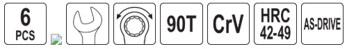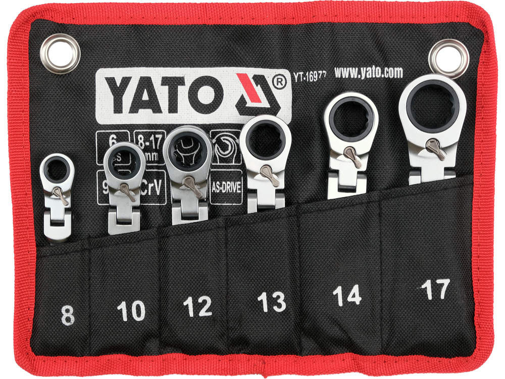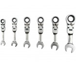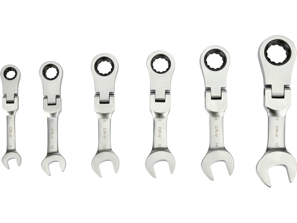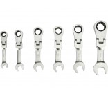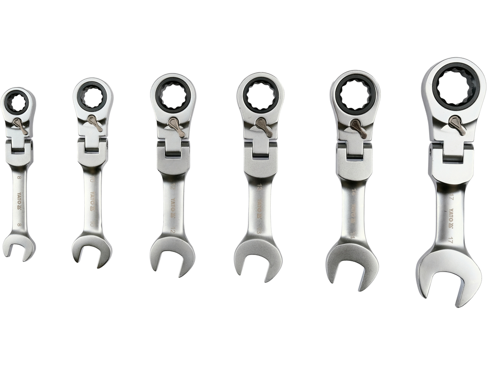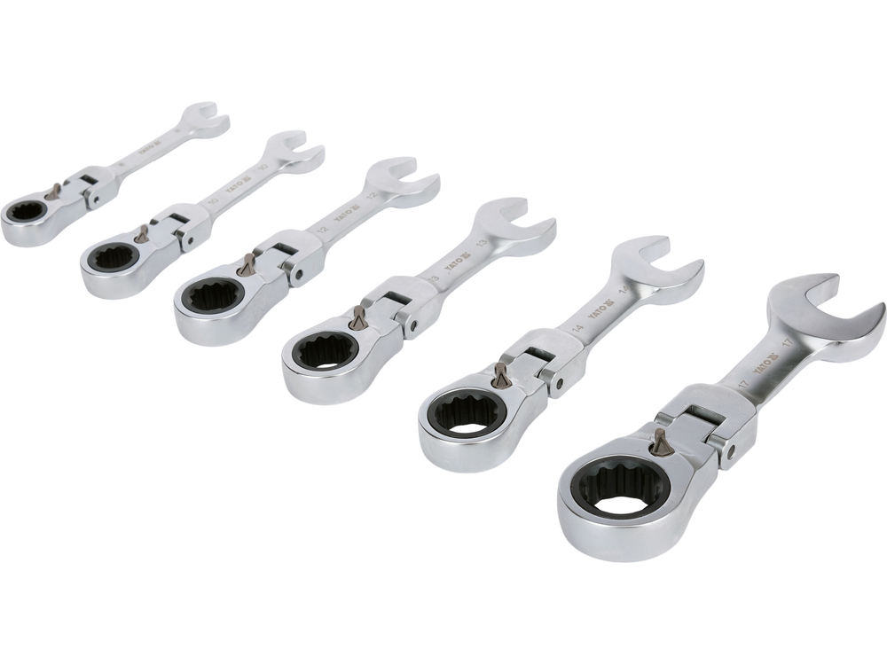 Набор плоских коротких ключей | с переключением | с трещоткой и шарниром | 6 шт. (YT-16977)