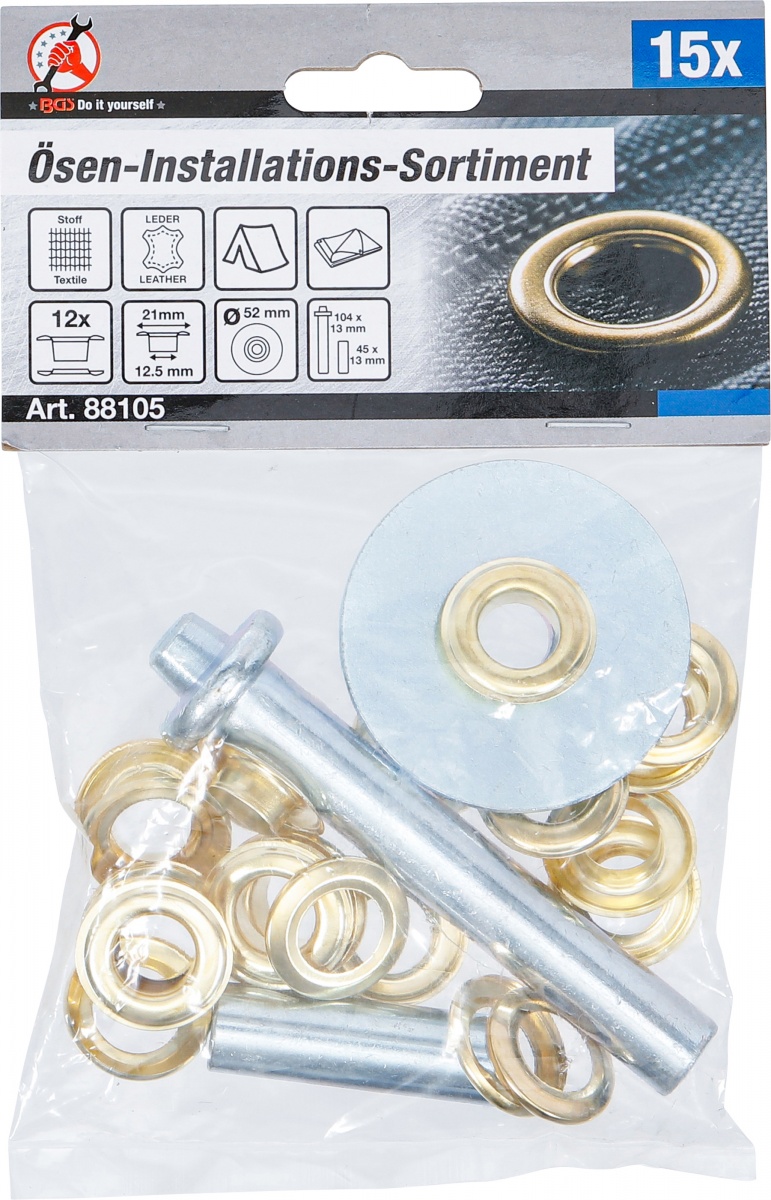 incl. 12 round eyelets for reinforcing punched holes in leather, tarpaulins, fabric tarpaulins and other custom work