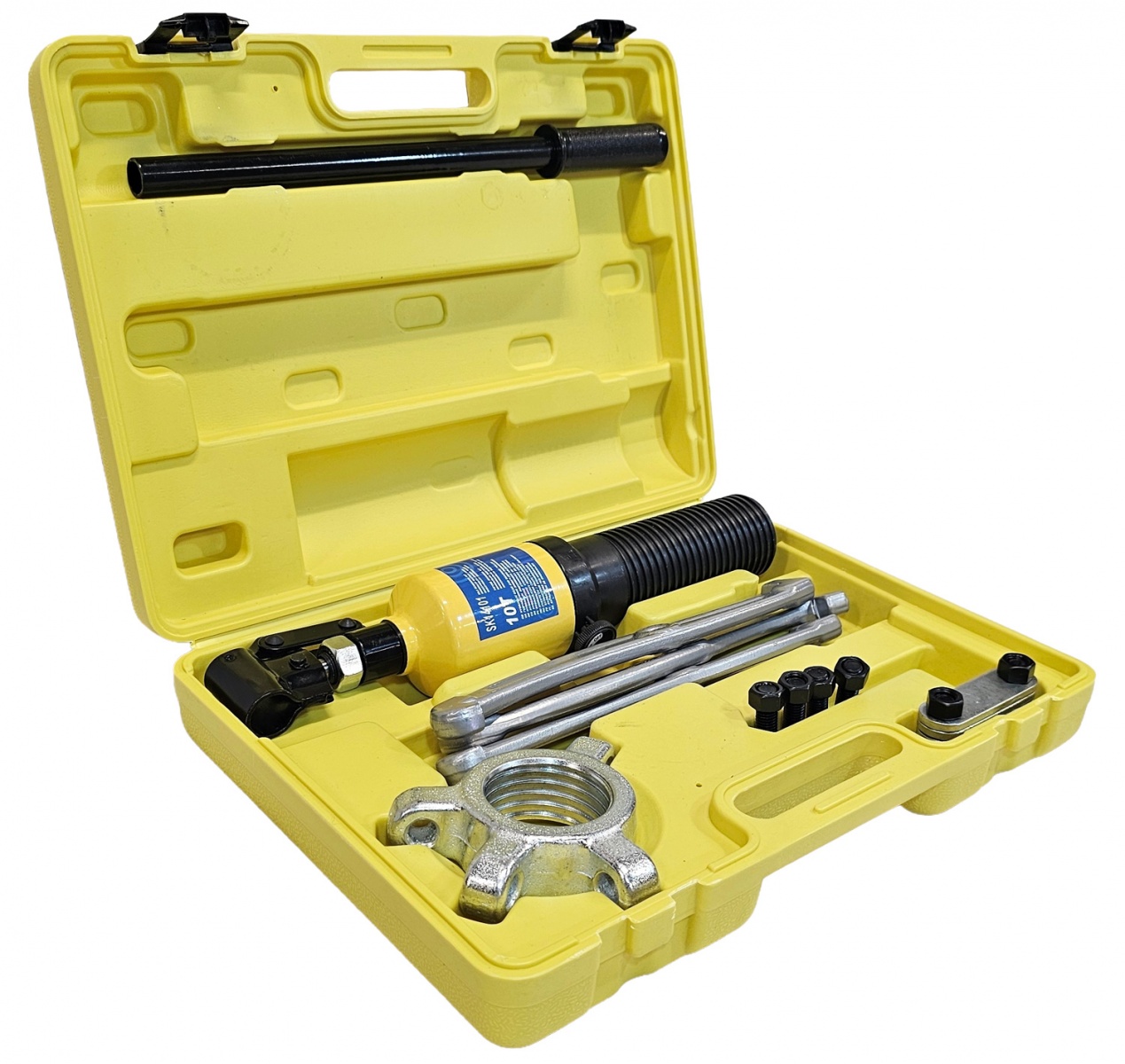 Puller for bearings, gears, etc. Thanks to its hydraulic construction, it provides considerable pulling power. Unlike screw pullers, there is no torsional force which can cause the tool to slip. Simplicity of service: power transmitted gradually and effortlessly. Increased safety: high durability and safety valve. A set of clamps included in the set.
