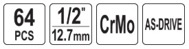 Набор ударных торцевых головок и бит | 1/2" | с переходниками | 64 шт. | 10 - 32 мм (YT-10260) |