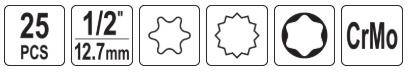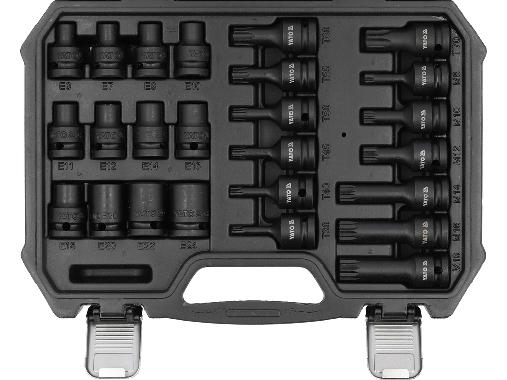 Набор ударных торцевых головок E6-E24 и биты T30-T70/M8-M18 | 1/2" | 25 шт. (YT-10572)