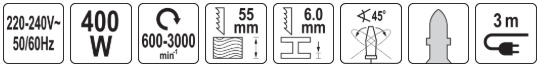 maximum cutting thickness of 55 mm in wood and 6 mm in soft metals allows for the implementation of various carpentry and assembly projects