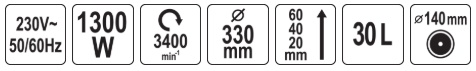 The mower is equipped with durable and robust wheels with a diameter of 14 cm. It has power of 1300W and a speed of 3400 revolutions per minute.