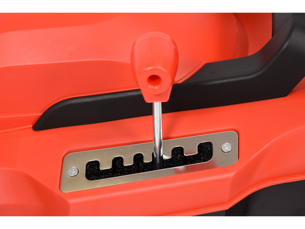 The durable, sturdy and large wheels that the mower is equipped with allow you to mow in difficult terrains. Large power of the mower (1800W), high speed at 3300 revolutions per minute .nbsp;and wide blade (38cm) will, on the other hand, allow you to quickly yet thoroughly cut your lawn and give it the right look.