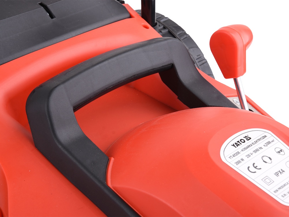 YATO electric mower with power 2000W. The mower, thanks to its high power and large cutting diameter, will allow you to thoroughly mow large and demanding grassy areas. Adjustable and comfortable driving handle will allow you to mow comfortably even for a couple of hours.