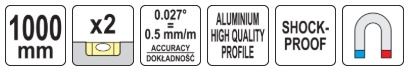 Magnetic spirit level made of stable aluminum profile l-1000 mm