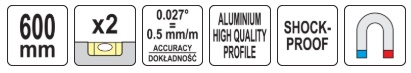 Magnetic spirit level made of stable aluminum profile l-600 mm