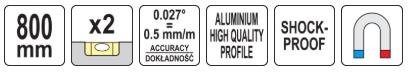 Magnetic spirit level made of stable aluminum profile l-800 mm