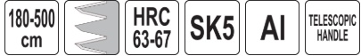 A branch saw with a telescopic handle that allows reaching heights of up to 7 meters. The profiled shape and cross-cut teeth allow for effective and precise cutting in both directions. The blade is made of high-quality SK5 steel, durable and resistant to mechanical damage. Induction-hardened teeth have a protective coating that increases durability. The aluminum handle serves as a connector for mounting the saw on the handle.