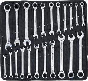 in a practical roll-up pouch with labeled individual compartments for each wrench