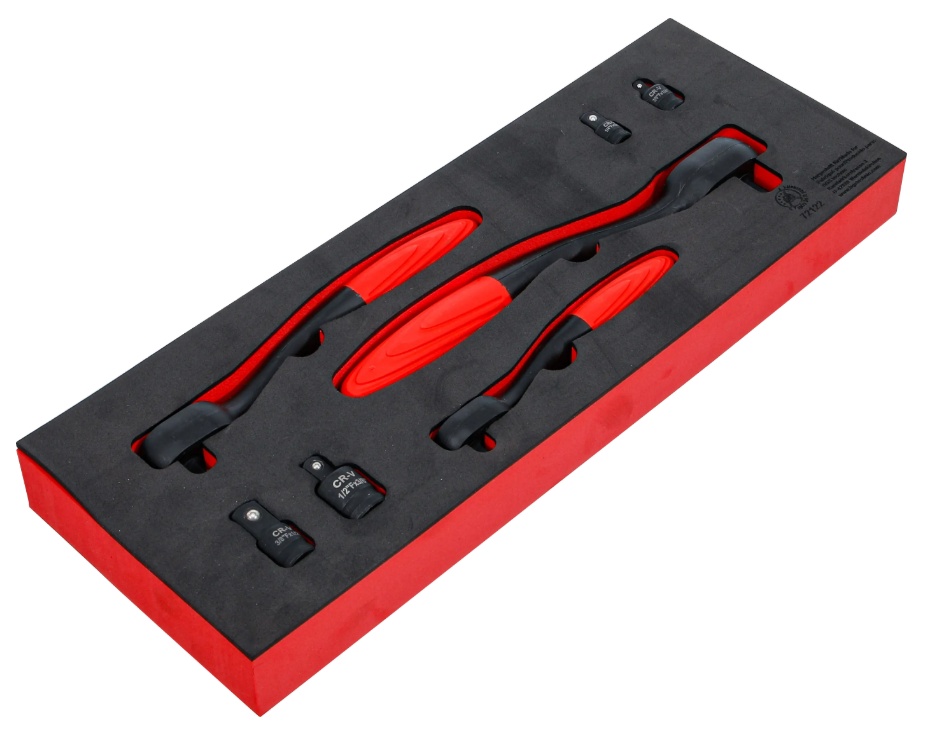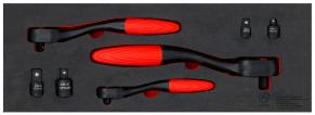 the tools are protected in the hard foam tray and are stowed in the recesses in a non-slip manner