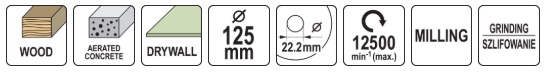 Thanks to the maximum speed of 12500 rpm, the router works efficiently, maintaining user safety. The 22.2 mm mounting hole allows for convenient adaptation to standard angle grinders.