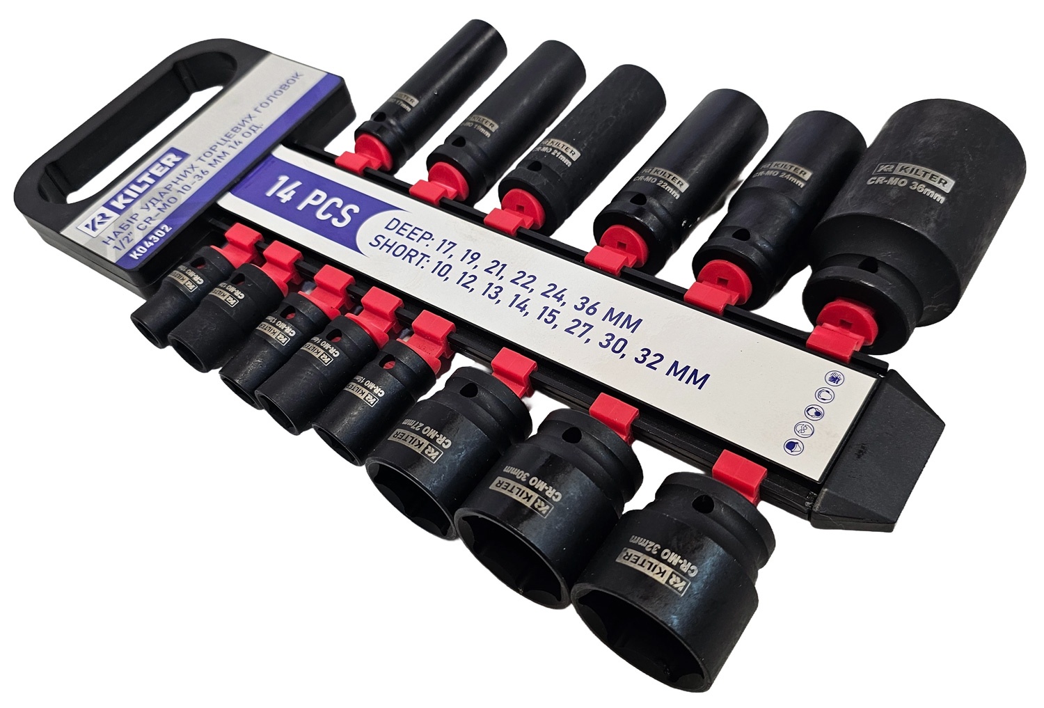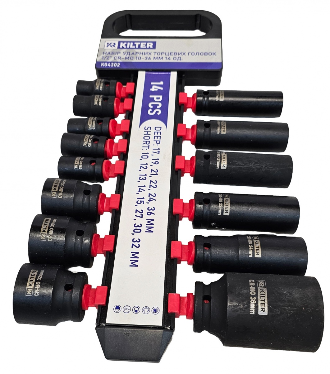 Набор ударных торцевых ключей (длинных и коротких) | 12,5 мм (1/2 дюйма) | 10-36 мм | 14 шт. (SK1214)