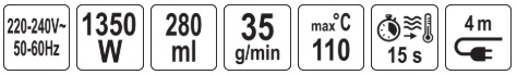 high efficiency - steam flow at two levels 22/35 g/min at a maximum temperature of 110˚C effectively dissolves dirt, removes bacteria, and helps to get rid of unpleasant odors