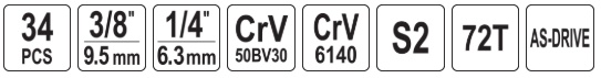 tool handle size: 1/4" (6.3 mm), 3/8" (9.5 mm)
