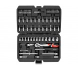 Tool set consisting of 68 elements adapted for work in car services, mechanical workshops, industrial settings, and households.