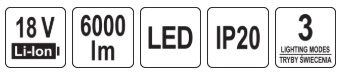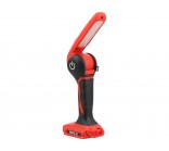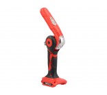 The YATO 18 V rechargeable flashlight is a mobile light source designed for illuminating workstations, technical interiors, and assembly areas. The battery power eliminates the need for cords, increasing freedom of movement in the workshop, on construction sites, and during service work. The design features two LED panels – one on the top and one on the side – allowing for the adjustment of lighting according to the nature of the tasks performed.