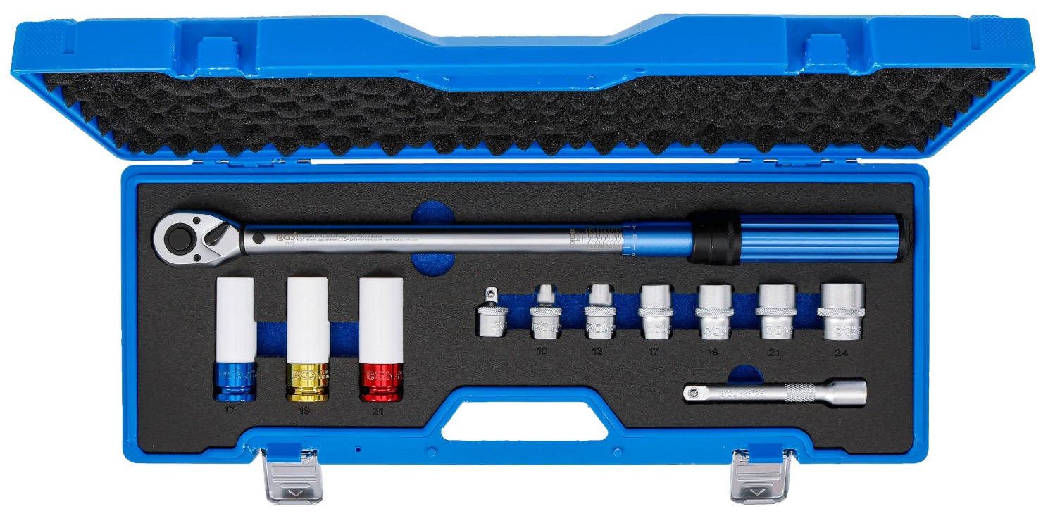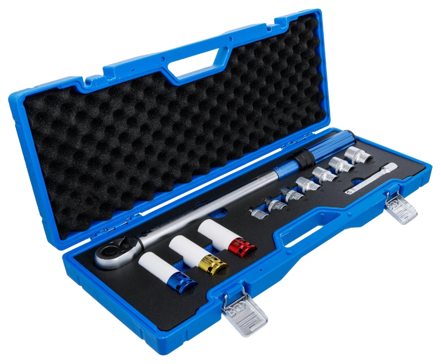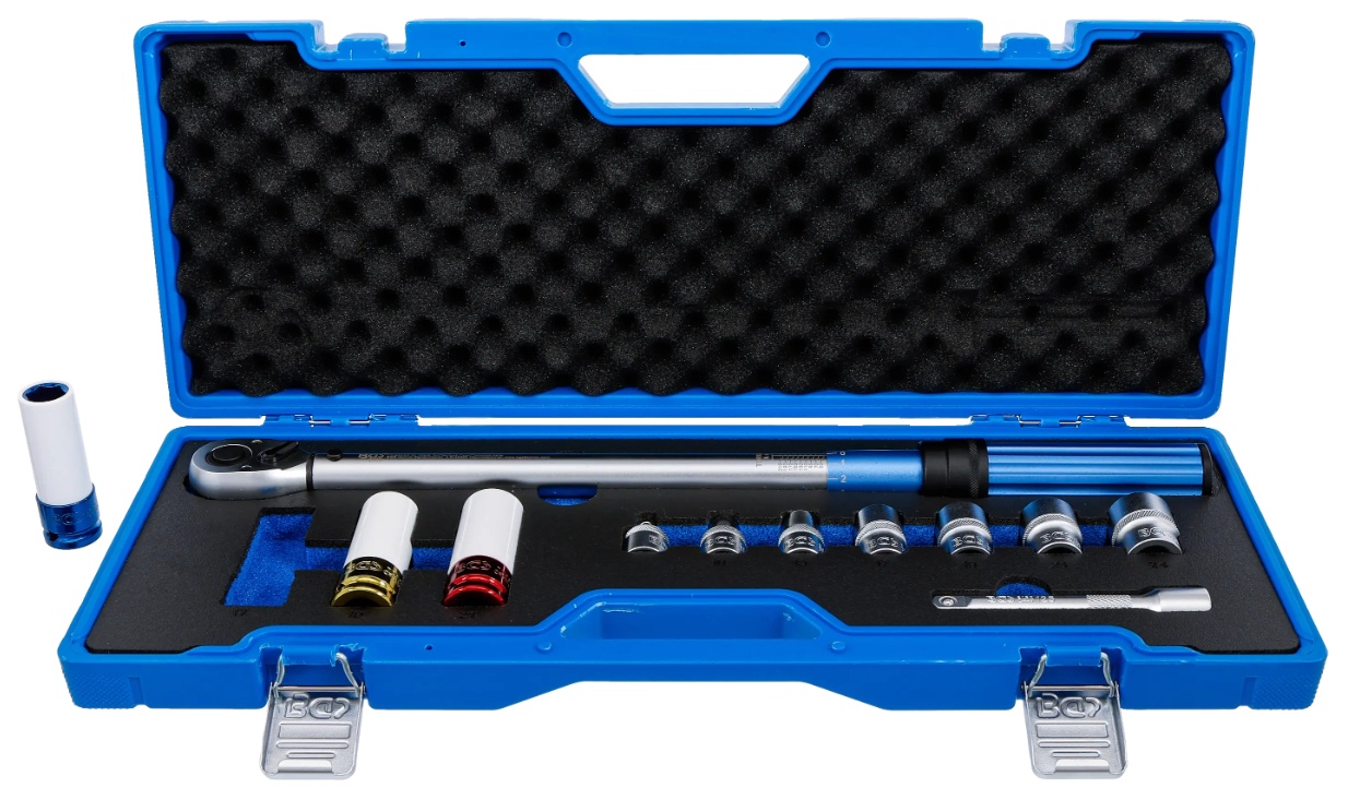 optimally designed, serrated steel handle for easy setting of the desired torque value, as well as a secure grip of the tool handle