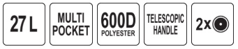 27 l capacity allows for transporting a set of tools and accessories needed in daily work