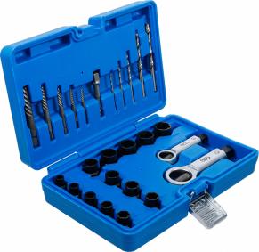 8 twist sockets (spiral profile) / screw extractor | 10 mm (3/8"), 10 - 11 - 12 - 13 - 14 - 16 - 17 - 19 mm, chrome molybdenum steel