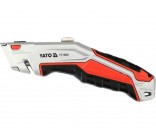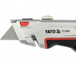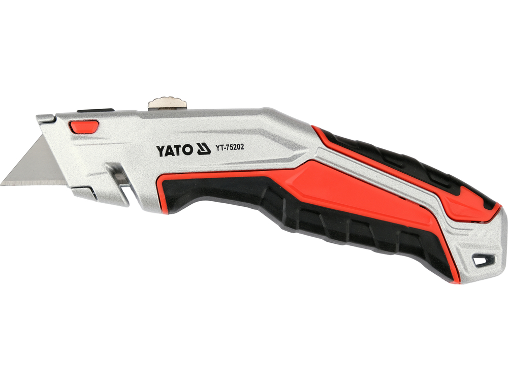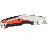 Trapesoidal blade knife designed for intensive assembly and warehouse work, where a strong and stable blade is required. The aluminum body supplemented with ABS and TPR elements increases resistance to damage, while also improving grip when cutting harder materials. The SK5 tool steel blade ensures high durability and consistent cutting quality.