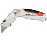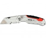 Trapesoidal blade knife designed for intensive assembly and warehouse work, where a strong and stable blade is required. The aluminum body supplemented with ABS and TPR elements increases resistance to damage, while improving grip when cutting harder materials. The SK5 tool steel blade ensures high durability and repeatable cutting quality.
