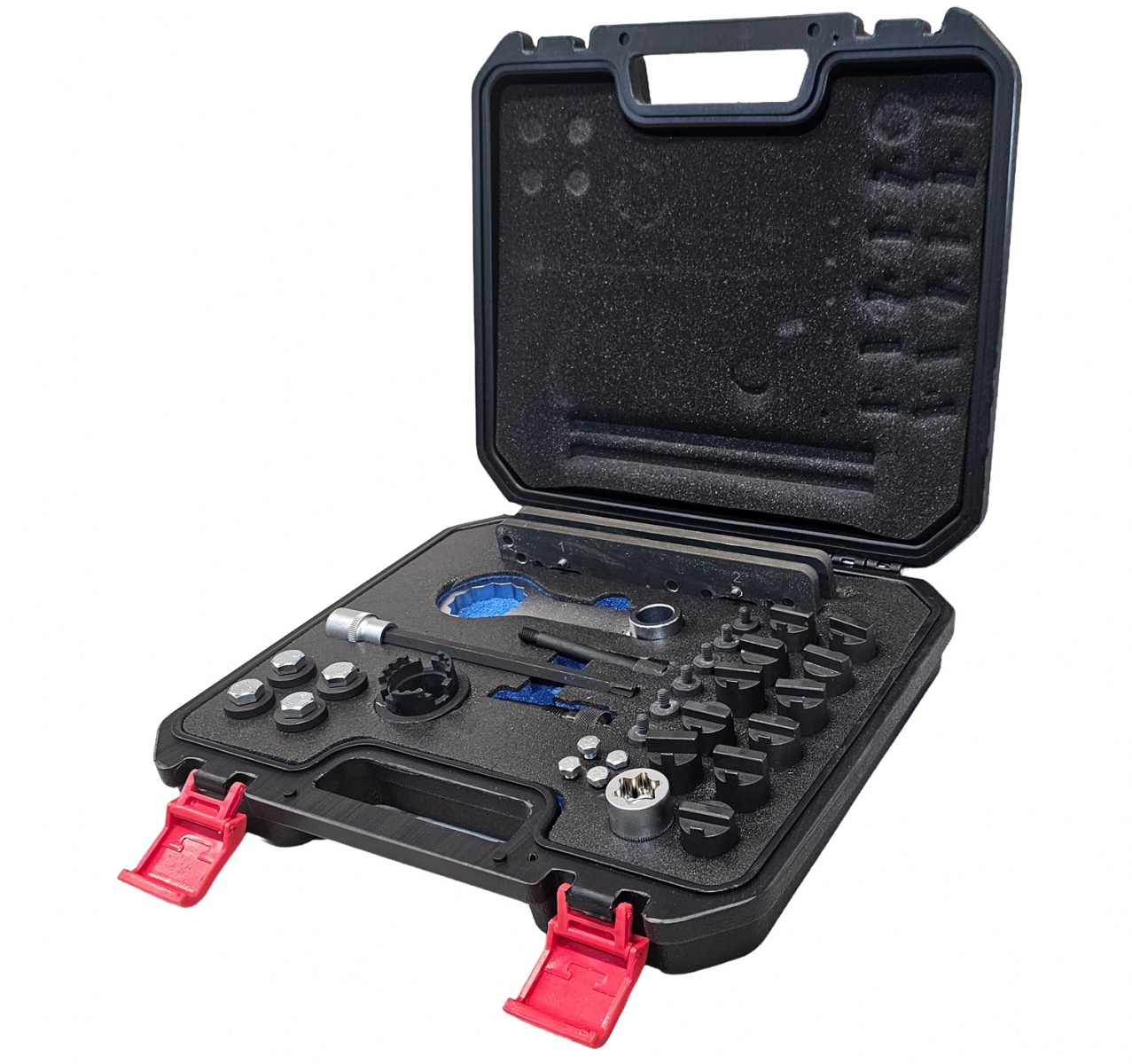 This tool is used to fix the camshaft in position when removing and installing the camshaft timing chains