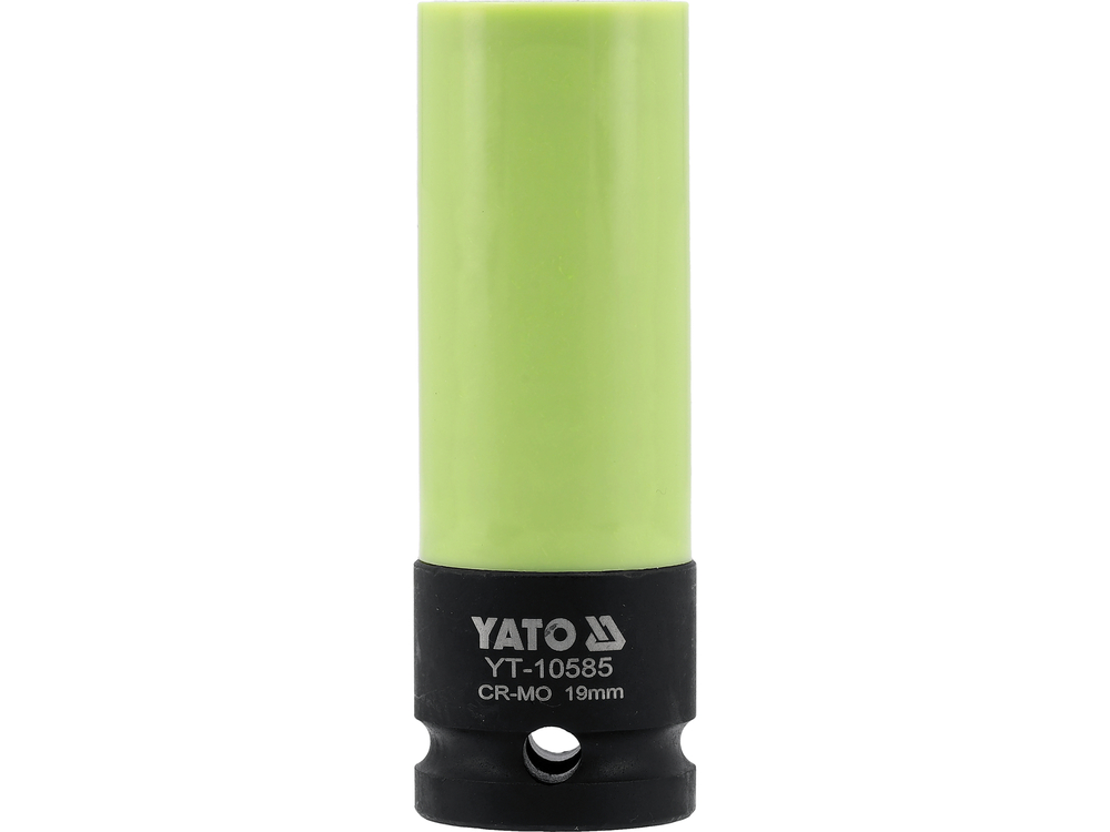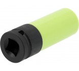 Professional impact socket designed for loosening and tightening screws in aluminum rims. Made from 42CrMo alloy steel, it offers high resistance to dynamic loads and a long lifespan when used with manual and impact wrenches with a 1/2" (12.7 mm) drive. The 85 mm length facilitates access to deeply seated screws.