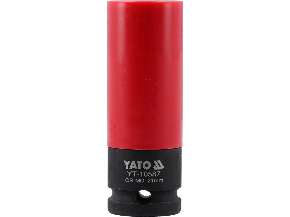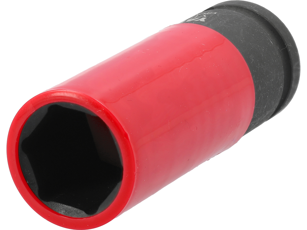Professional impact socket designed for loosening and tightening screws on aluminum rims. Made from 42CrMo alloy steel, it offers high resistance to dynamic loads and long service life when used with manual and impact wrenches with a 1/2" (12.7 mm) drive. The length of 85 mm facilitates access to deeply seated screws.