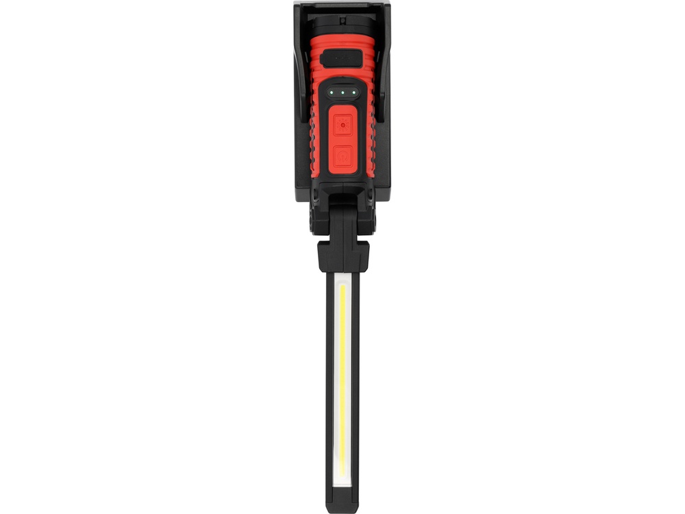 The rechargeable workshop lamp with charging station is a mobile inspection lighting designed for work in close proximity to the detail. The narrow, elongated design allows the lamp to be inserted between structural elements, and the adjustable joint 55° + 125° allows to precisely set the direction of light without changing the position of the entire device. This solution facilitates the inspection of surfaces, joints, and mounting elements with limited access.