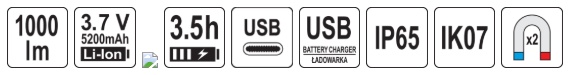 The arrangement of three lighting zones provides a different beam character depending on the stage of work. The upper spot reflector supports the identification of details and markings, while the longitudinal panels provide uniform illumination of the work area during assembly or adjustment. The full power mode allows quick illumination of a larger space, and the economic modes extend the working time during prolonged service activities.