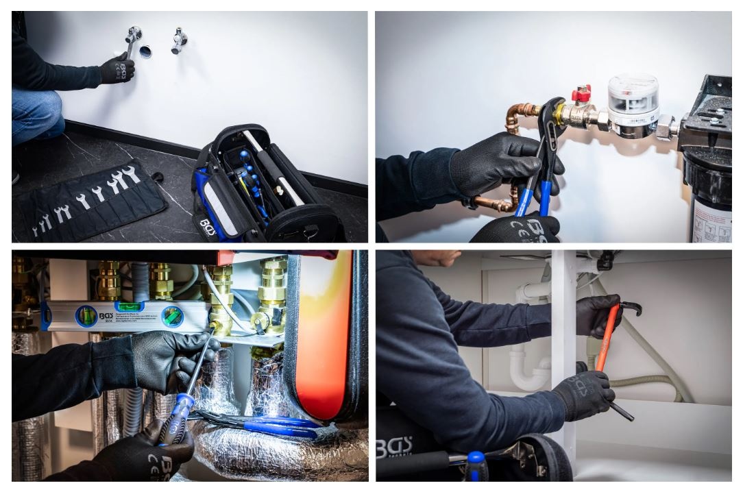 sockets, extension bar, reversible ratchet, water pump pliers, gaspipe pliers and double open end spanners made of chrome vanadium steel