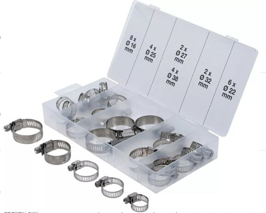 4 hose clamps Ø: 25 mm, external hexagon screw, slotted, 6 mm bandwidth:8mm