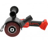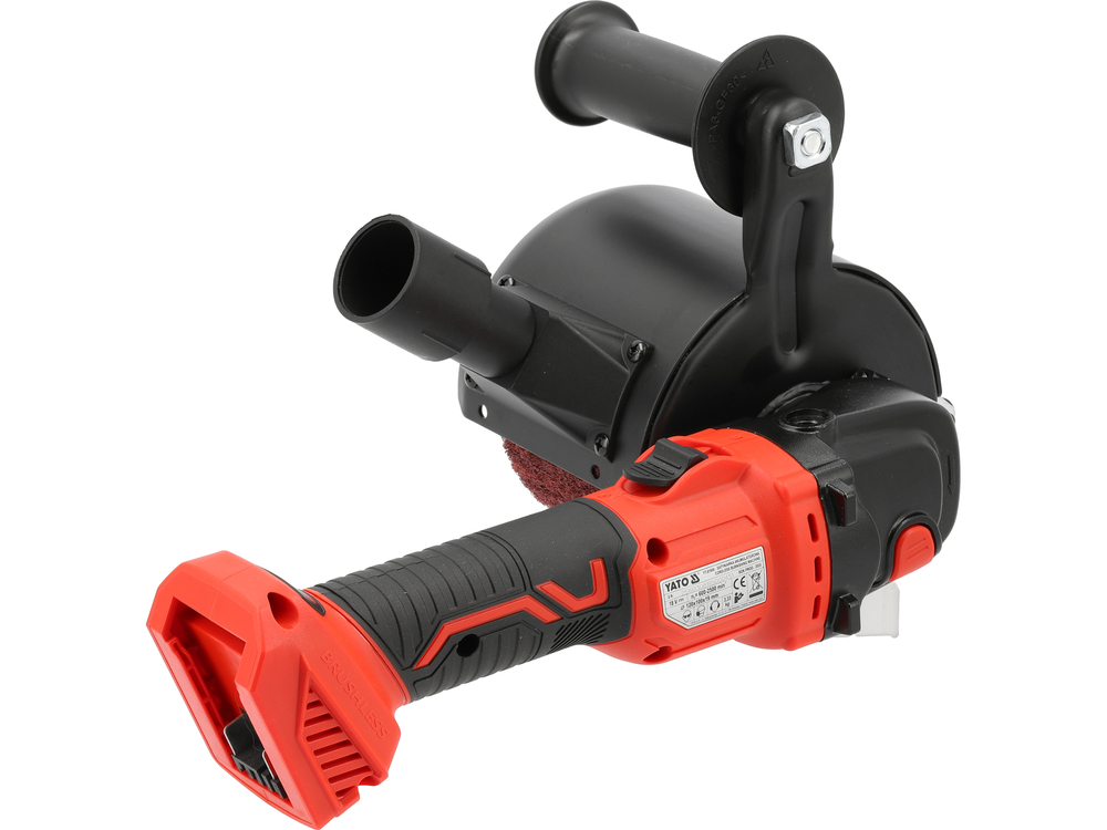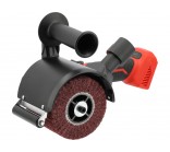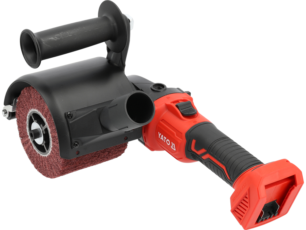 The cordless sander is designed for surface treatment using drum brushes, allowing for sanding, cleaning, and structuring of materials. Depending on the brush used, the tool is effective when working with wood, metal, and selected synthetic materials. The device enables the removal of paint coatings, prepares surfaces for further processing, and also creates a satin or aging effect on the material. It is a practical tool for renovation, carpentry, and locksmithing tasks, allowing for quick surface preparation and achieving a decorative material structure.