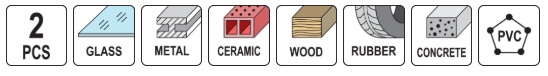glass, metal, ceramics, wood, rubber, concrete, PVC