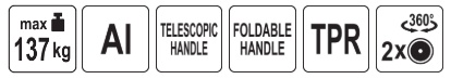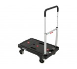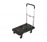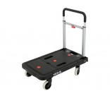 The extendable handle made of durable TPR material provides a comfortable grip and user comfort. The trolley can be folded into compact dimensions of 41 x 8.4 x 67.5 cm, making it easier to store in a workshop, warehouse, or car. When unfolded, it reaches dimensions of 67.5 x 41 x 92 cm, offering a stable and comfortable transport surface.