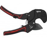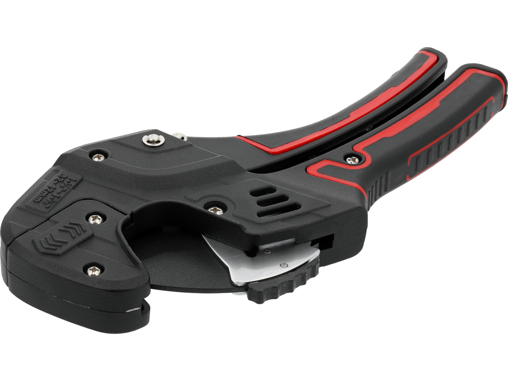 Manual pipe cutter designed for precise cutting of pipes made of installation materials. The Twin Cut design guides the blade parallel to the axis of the pipe, ensuring a smooth edge after cutting that does not require additional processing. The tool is perfect for hydraulic work, installation of water systems, and irrigation systems.