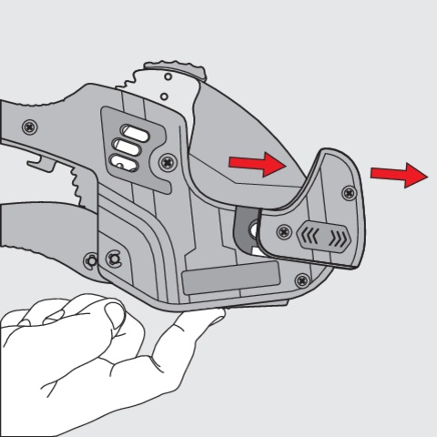 The aluminum body reduces the tool's weight while providing sufficient rigidity during operation. The quick release mechanism allows for immediate opening of the jaws after cutting, preparing the tool for the next section of pipe.